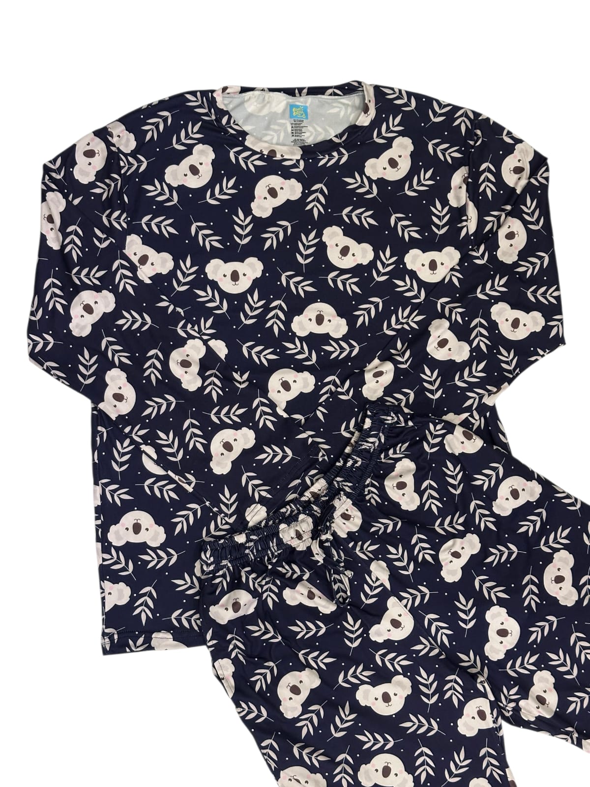 Pijama material de piel de durazno, pantalón con cordón ajustable. Con diseños de koalas.